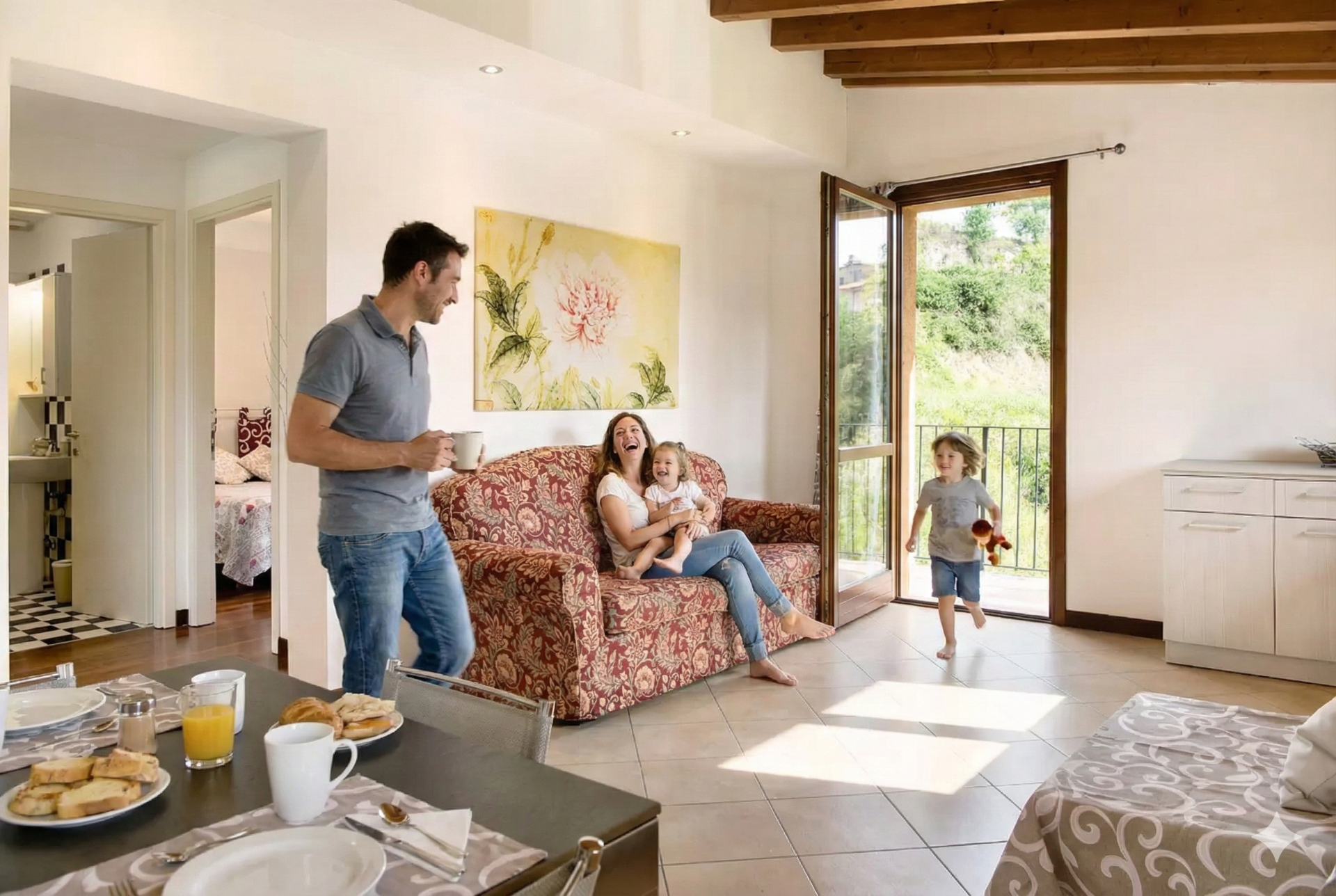 A detached 60sqm home offering total privacy. Features 2 separate bedrooms, a fully equipped kitchen, living room, and a private terrace overlooking the vineyards. The perfect independent stay, just steps from the pool.